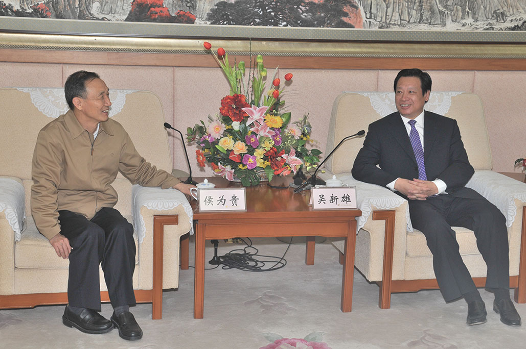 時(shí)任江西省省長(zhǎng)吳新雄與董事長(zhǎng)侯為貴親切交談